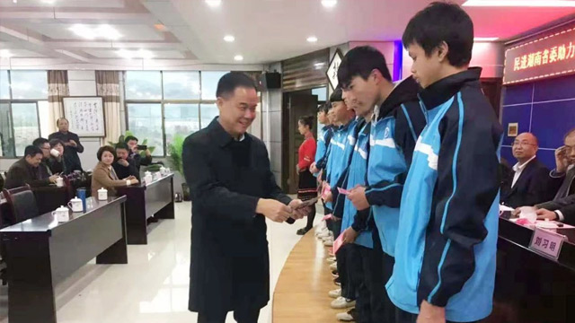 “一家一”助学就业·同心温暖工程是由省委统战部、省教育厅和省扶贫办牵头组织,湖南中华职教社具体实施,以省内优质职业院校为实施学校,以品学兼优的农村贫困学生为实施对象,以公益资助的方式完成两年在校学习、一年企业顶岗实习,帮助贫困家庭的孩子学得一门专长并推荐就业,实现精准扶贫、教育扶贫的目标。自2012年10月在湘西吉首市启动以来,刘习明院长分别资助湘西自治州、张家界市、怀化市、邵阳市等6个“职业技术培训班”,帮助贫困山区的孩子学习职业技术。