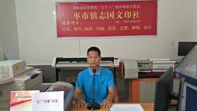 9月,文印社经营小有成绩,贺志国在十一届湖南省政协第二十五次常委会远程发言中激动的说:“让我掌握了一门技术,就能够滴自己的汗、吃自己的饭,我就能够抬头做人,就能够回报社会!”